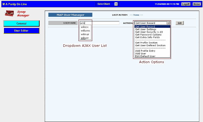 The MAP User Editor is web-based sysop user manager/editor. Access should be restricted to users with Administrator security access profiles